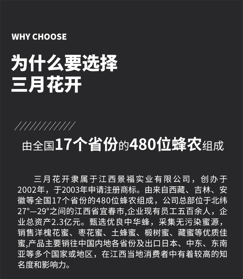 所有蜂蜜原料來自自設和合同基地, 建立了蜂農備案制,确保了蜂場 的安全管理和蜂産品原料質量。